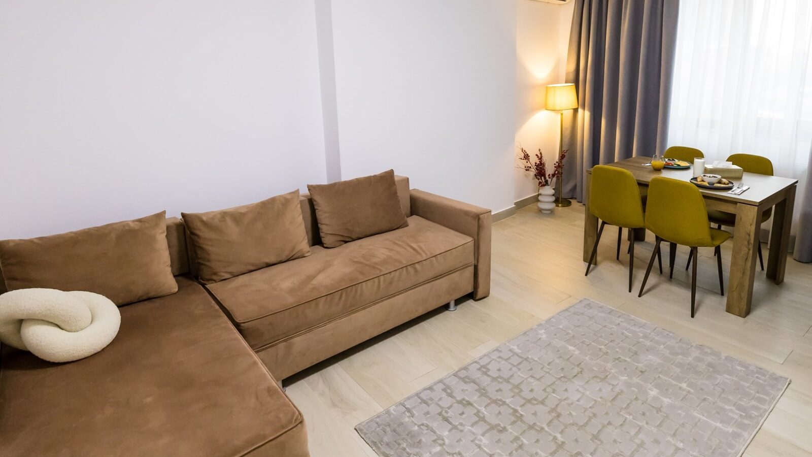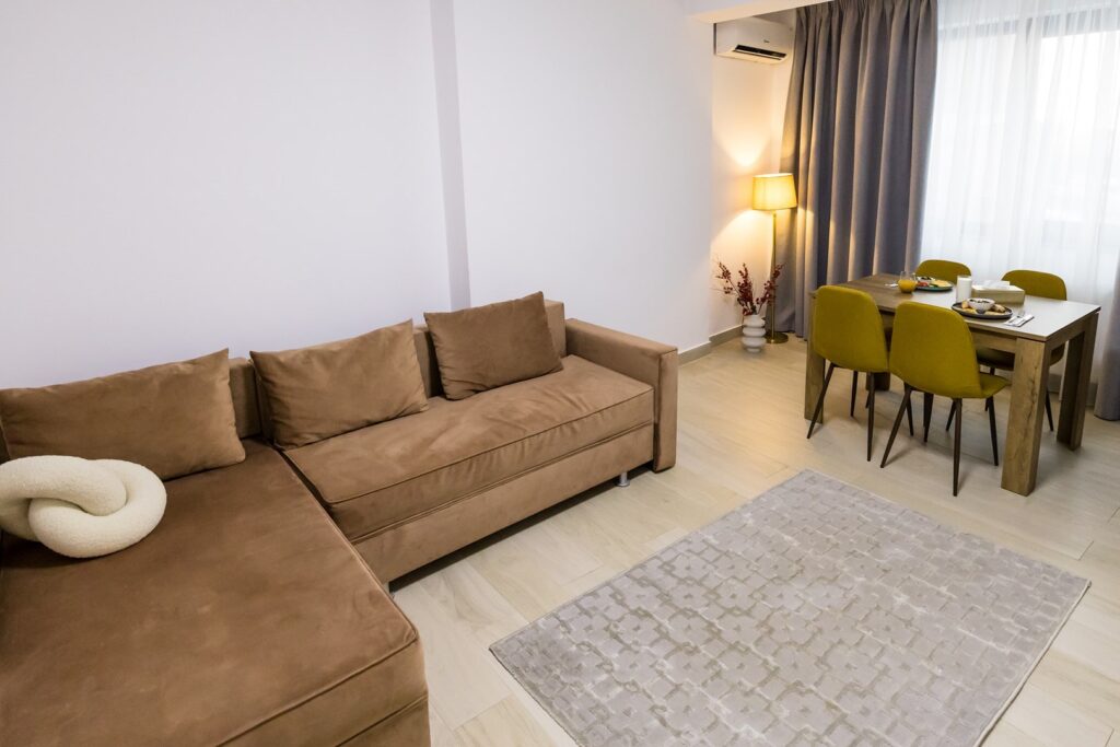 Bucurati-va de un sejur urban rafinat in acest apartament spatios de 50 m², conceput pentru a imbina eleganta cu functionalitatea. Cu o capacitate maxima de 3 persoane, apartamentul dispune de un pat dublu mare si o canapea extensibila, fiind ideal atat pentru cupluri, cat si pentru familii sau calatori de business.